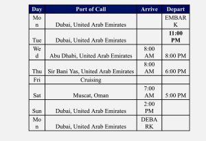 Matkatoimistolta tuli myös tällä viikolla mieluinen aikataulumuutos, eli laiva lähtee uuden vuoden aattona Dubaista vasta kello 23, kun normaalin aikataulun mukaisesti lähtö olisi kello 17. Tämä mahdollistaa sen, että ensinnäkin Dubaihin tutustumiseen on enemmän aikaa ja ennen kaikkea pääsemme näkemään mereltä käsin Dubain paljon kehutun uuden vuoden ilotulituksen. Lienee syytä odottaa melkoista showta, mikäli yhtään on aiempien vuosien mukainen.