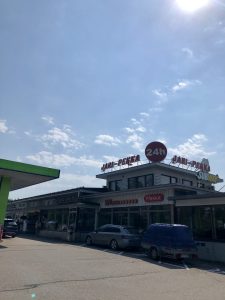 Yleisin stoppien määrä meillä on kahdesta kolmeen. Riippuu nälästä ja vessan tarpeesta. Tällä kertaa pysähdyimme tankkaamaan ja lounastamaan Hartolassa Jari-Pekka -huoltamolla. Lounaspöytä ok ja subit aina varma valinta.