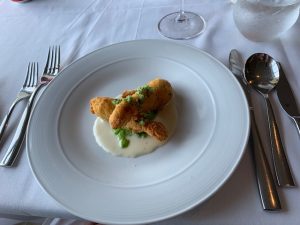 Kun perinteisesti risteilyaluksilla on ollut yksi ns pääravintola jakaantuneena ehkä useampaan kerrokseen, niin täällä oli illalliskonsepti muutettu täysin uudenlaiseksi. Pääravintoloita oli neljä: Cosmopolitan, Tuscan, Normandie ja Cyprus. Illallisaika saattoi olla joko aiempi kattaus tai myöhempi kattaus tai sitten ns vapaakattaus, jolloin illallistamisaika oli omien toiveiden ja saatavuuden mukaan klo 18-21 välillä. Me illallistimme vapaalla aikataululla, johon olemme jo Royalilla vuosia tottuneet ja hyväksi havainneet.